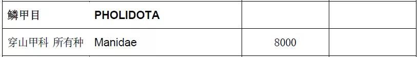 根据《陆生野生动物基准价值标准目录》,穿山甲的基准价值如下表: