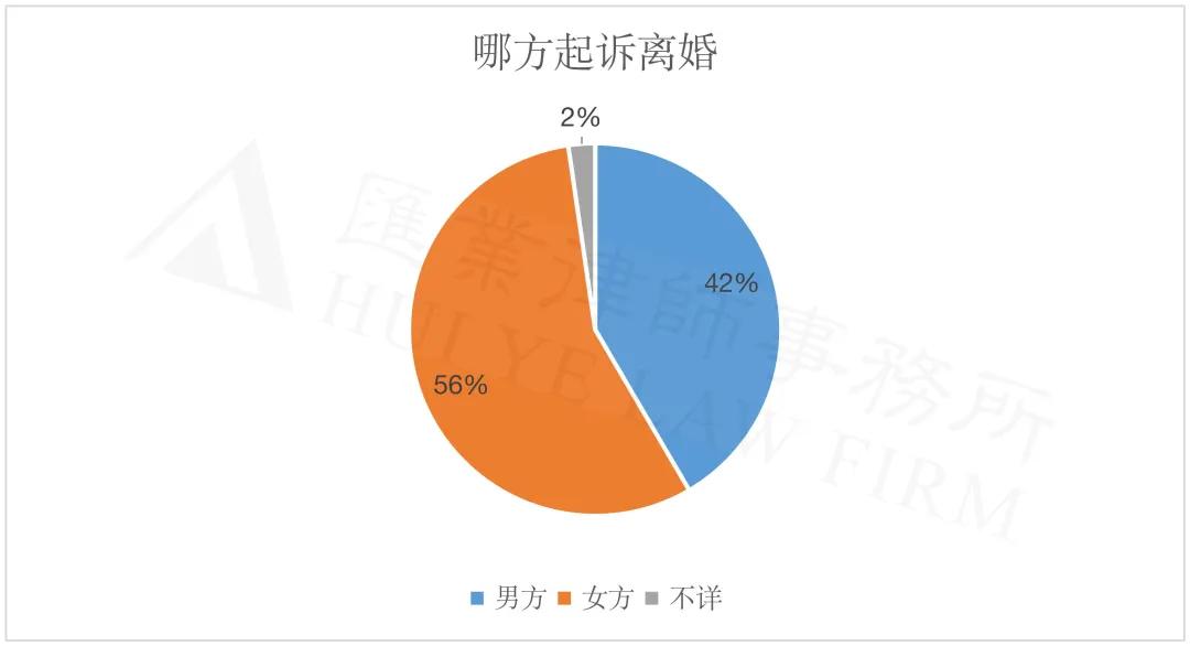 2019年度,56%的案件由女方提出,42%的案件由男方提出。与2018年度一样,女性对于失败婚姻的容忍度在下降。尤其是上海女性,她们在婚姻中不再是唯唯诺诺的弱势一方,而是占据更多的主导地位。一旦身陷失败婚姻的泥潭,更多女性敢于主动选择尽早抽身,而不是继续凑合。