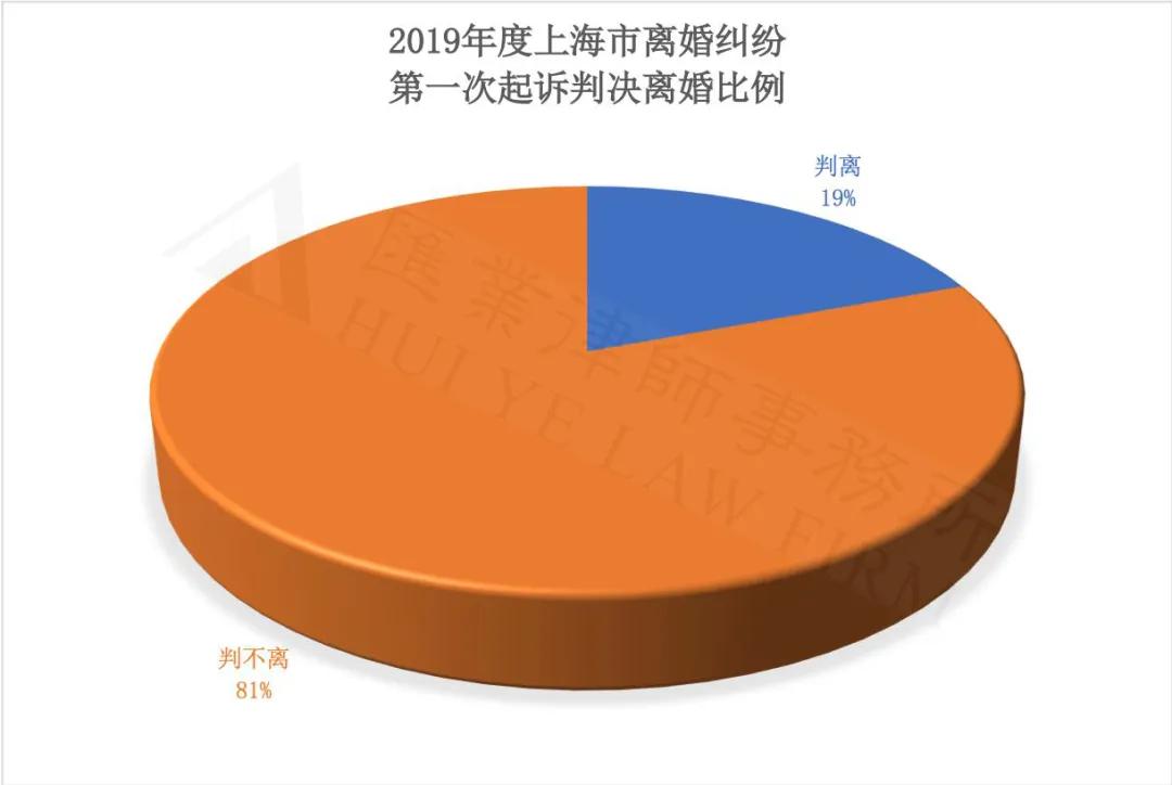 我们发现,在第一次起诉是否判离的概率问题上,上海法院2019年度的松紧绳继续保持了2017与2018年度的紧收状态,第一次起诉判决不准离婚的比例仍为81%,与前两年基本一致。