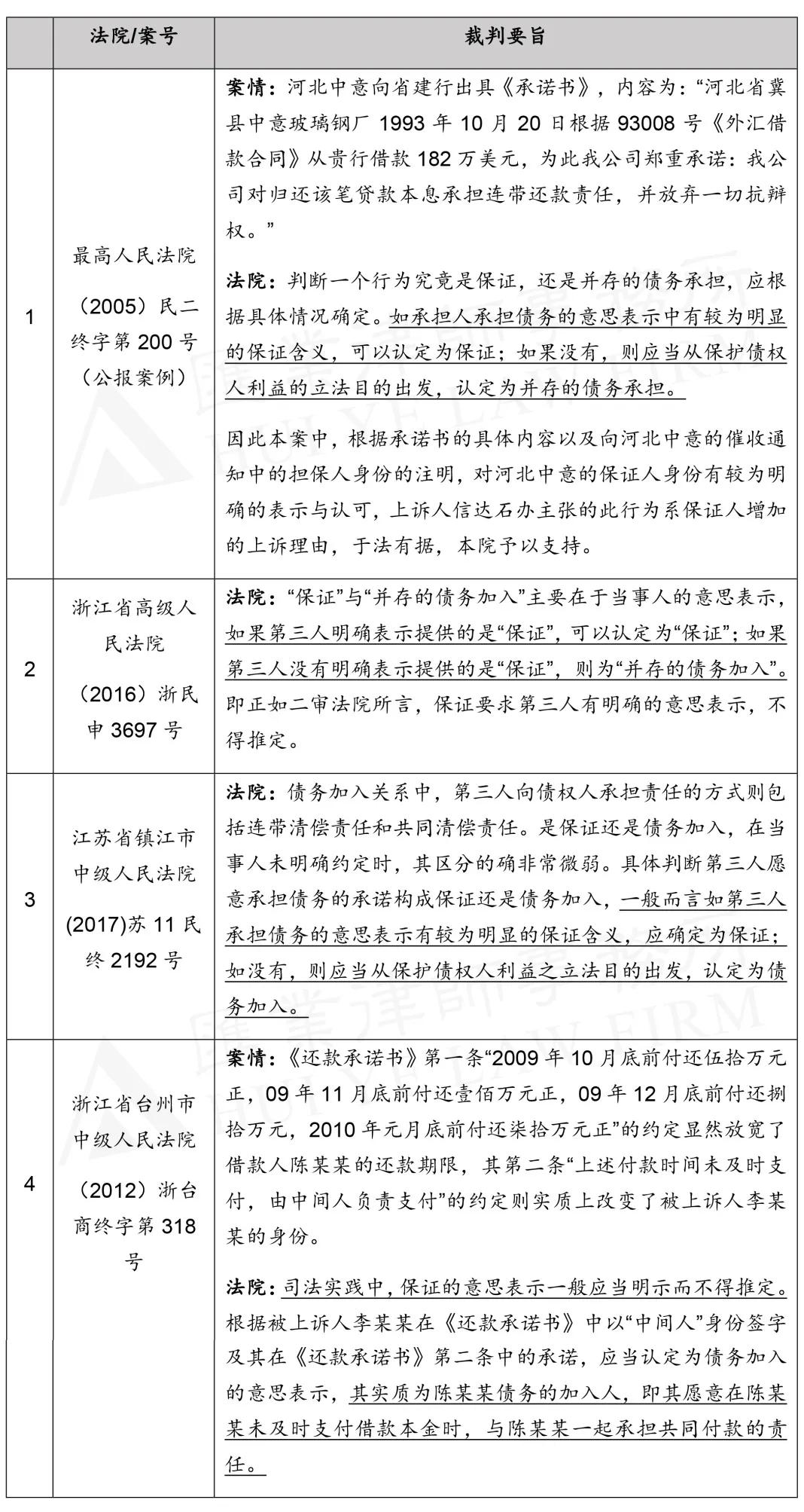 二、《民法典》颁布前关于保证担保和债务加入的司法认定标准